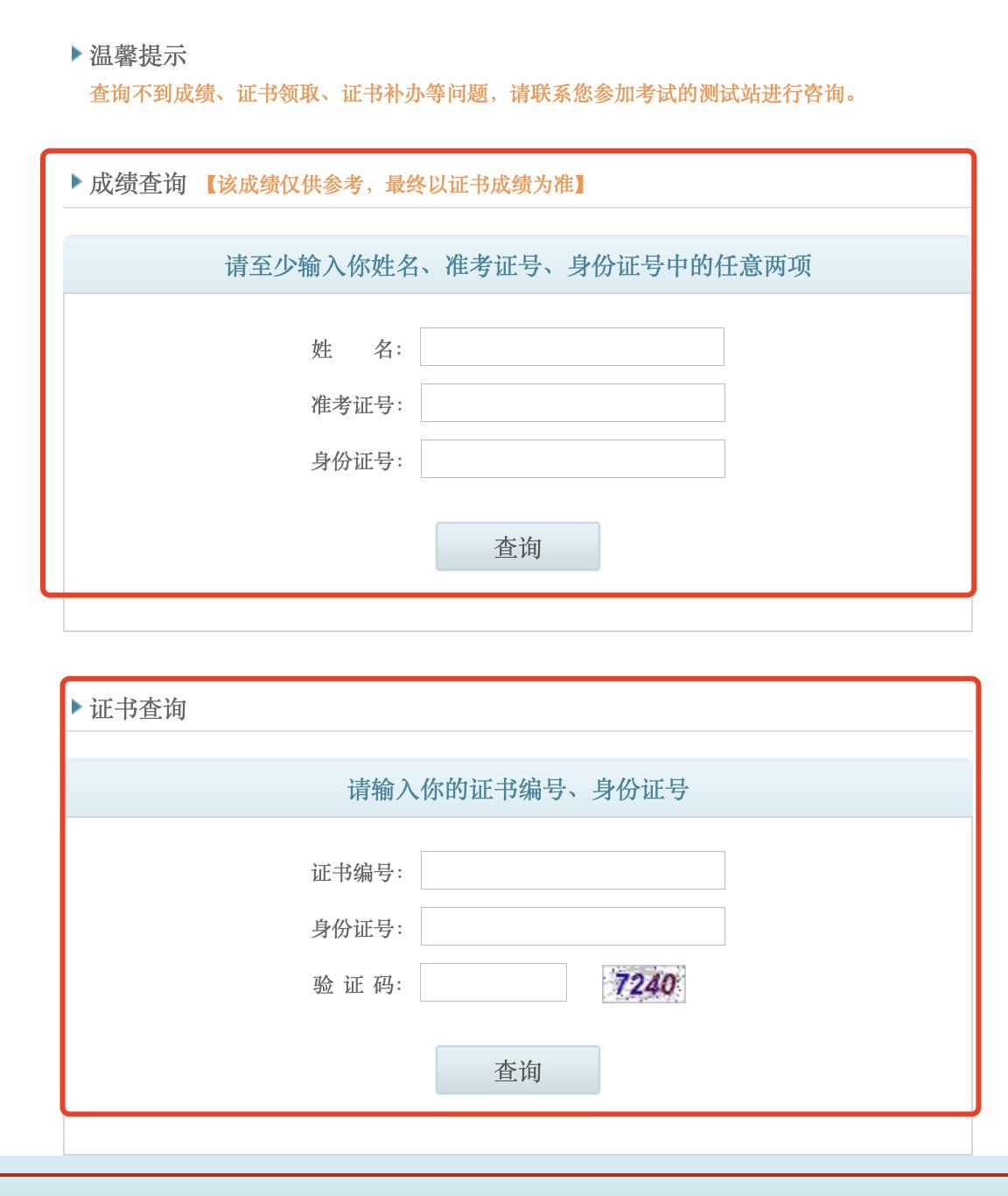 進(jìn)入查詢?nèi)肟,輸入自己的?zhǔn)考證號(hào)和個(gè)人信息,查詢普通話考試成績(jī),輸入自己的證書編號(hào)和身份證號(hào),還可以查詢自己的普通話證書