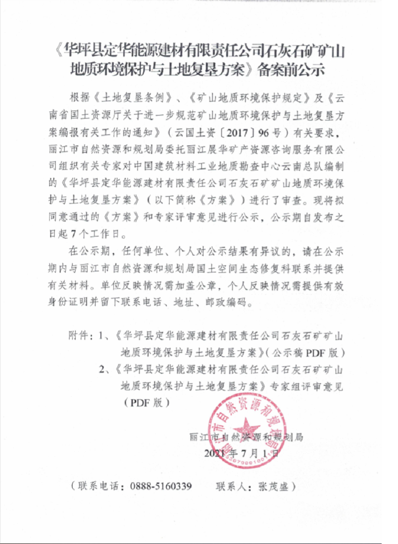 麗江市華坪縣定華能源建材有點(diǎn)責(zé)任公司石灰石礦恢復(fù)治理及土地復(fù)墾方案