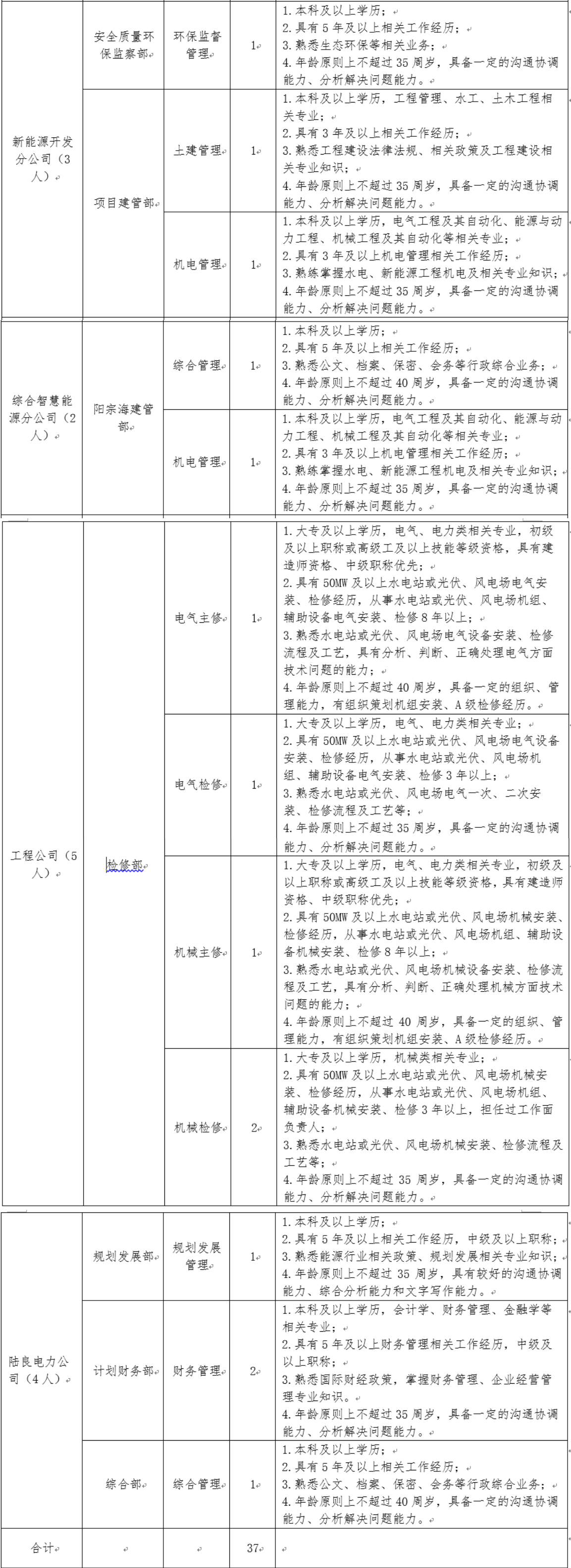 面向國家電投集團(tuán)系統(tǒng)內(nèi)、外招聘相關(guān)崗位人員37人。