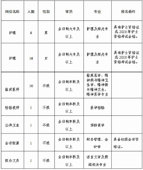 3.報名郵箱:報考“護理崗位”的人員請將相關(guān)材料發(fā)送至dlzeyzp@126.com;報考“臨床醫(yī)師”“檢驗技師”“精神衛(wèi)生防控”“會計核算”“院辦文員”等崗位人員請將相關(guān)材料發(fā)送至dlzeyrs@126.com。