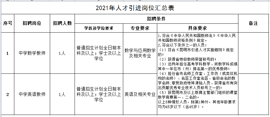 昆明滇池中學(xué)2021年人才引進公告