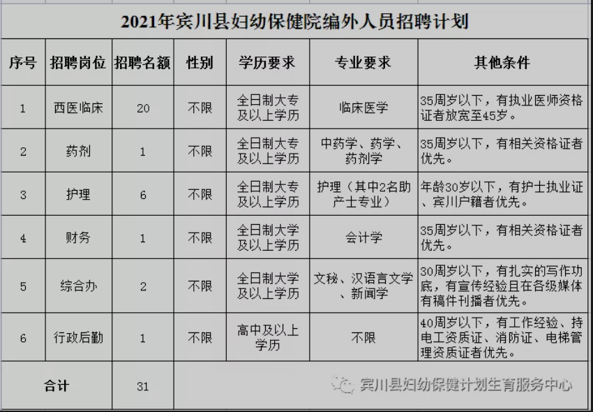 賓川縣婦幼保健院2021年面向社會(huì)公開(kāi)招聘編外人員公告