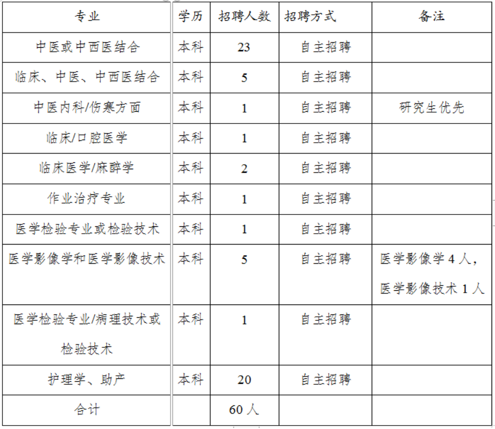 文山州硯山縣中醫(yī)醫(yī)院2022年公開招聘60名編制外合同制緊缺人員的公告