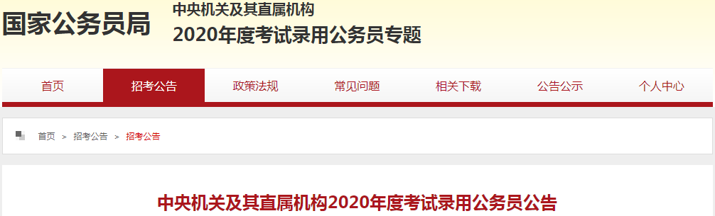 中央機(jī)關(guān)及其直屬機(jī)構(gòu)2020年度考試錄用公務(wù)員公告