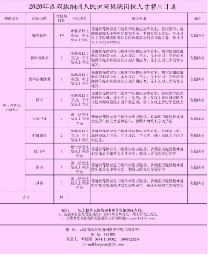 西雙版納州人民醫(yī)院2020年緊缺崗位人才引進(jìn)招聘計(jì)劃