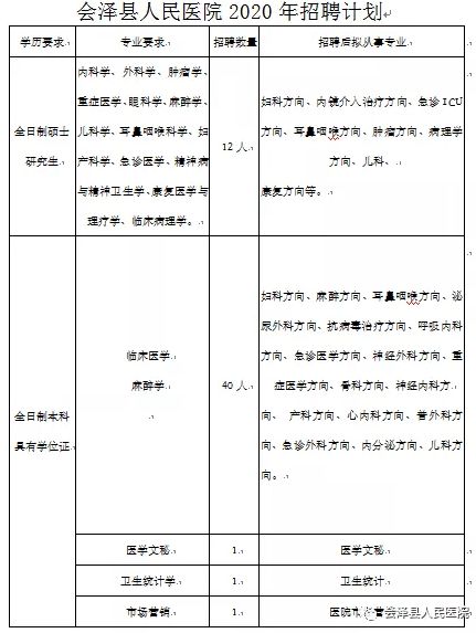 (二)會澤縣人民醫(yī)院2020年編外人員招聘計(jì)劃及相關(guān)要求