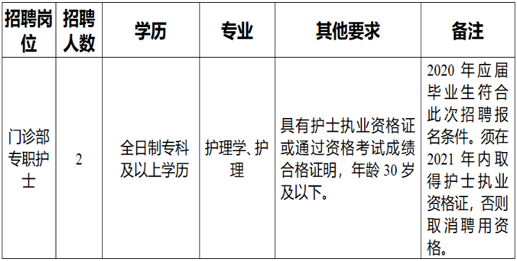 (六) 2020年應(yīng)屆畢業(yè)生符合此次招聘報名條件,如被聘用,須在2021年內(nèi)取得護(hù)士執(zhí)業(yè)資格證,否則取消聘用資格。